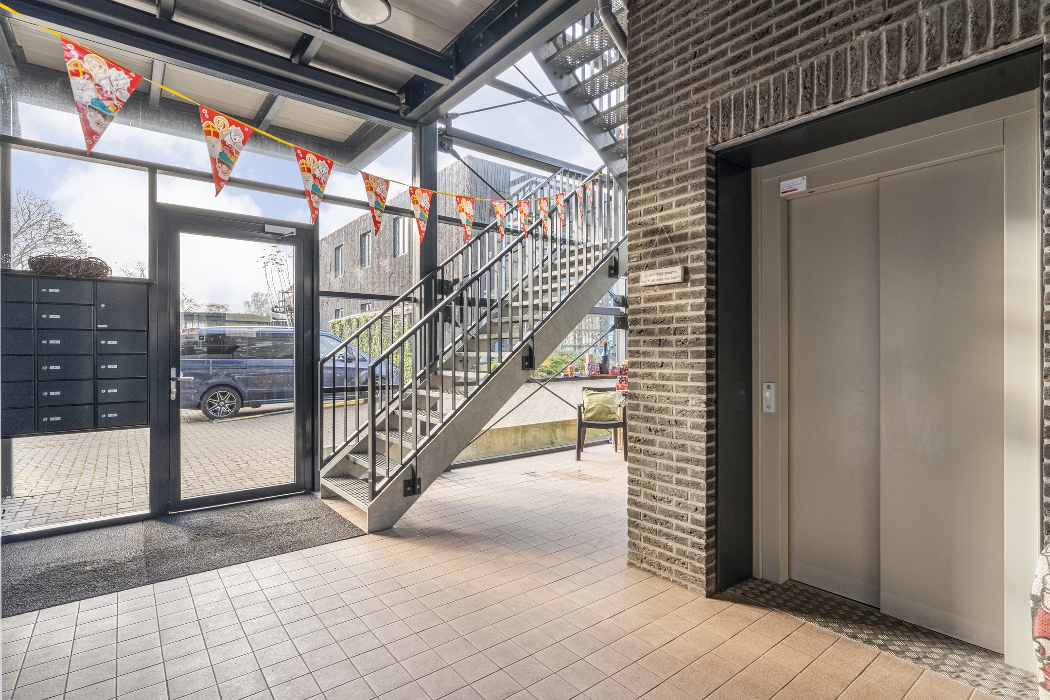 Je komt dit paleis niet zomaar binnen. Geen wachters, maar een modern video intercomsysteem zorgt voor een stevige beveiliging. Ben je eenmaal binnen de poort, dan brengt de lift of de trap je naar jouw appartement op de 2e verdieping.