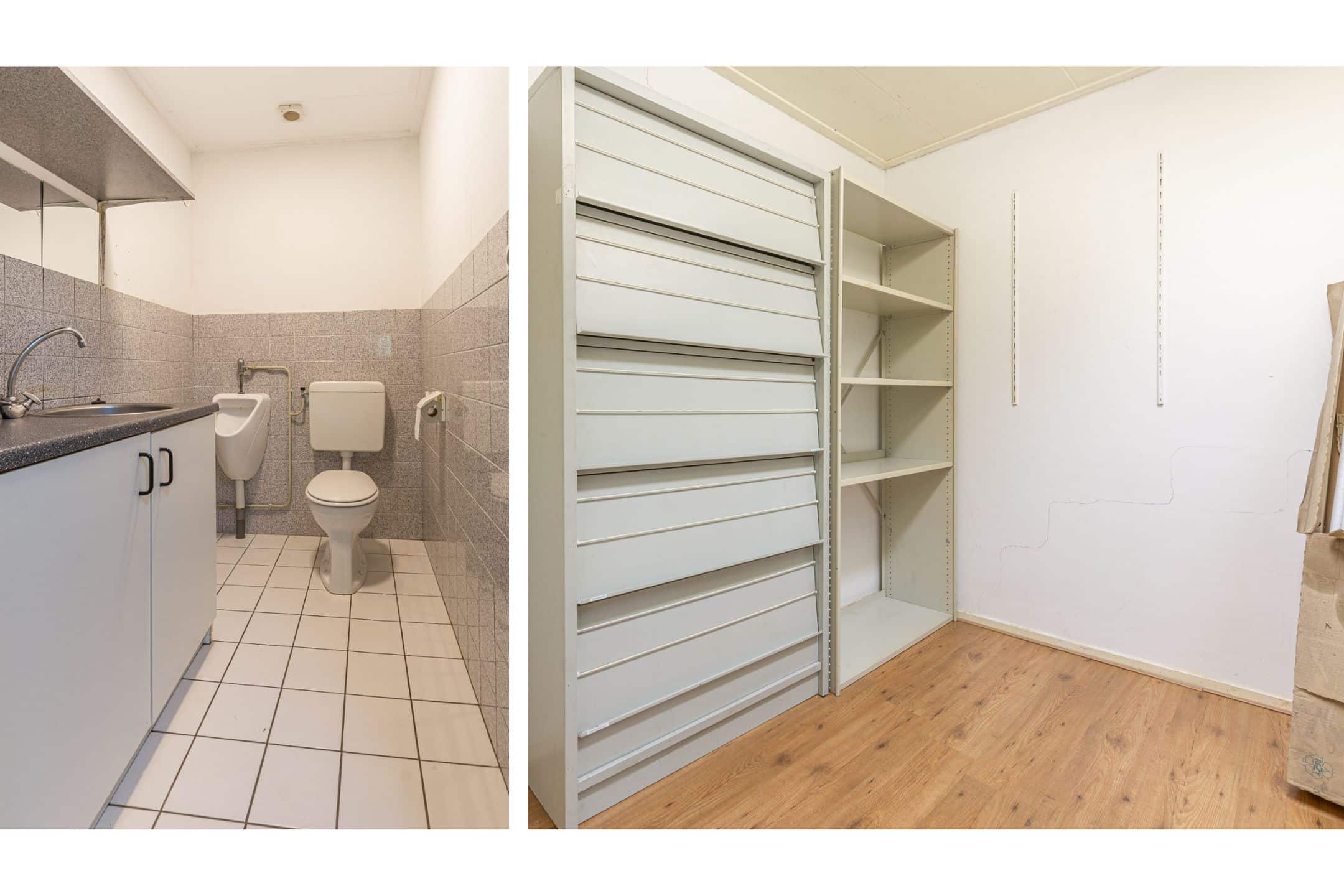 Winkel, toilet, kantoorruimte, opslagruimte.