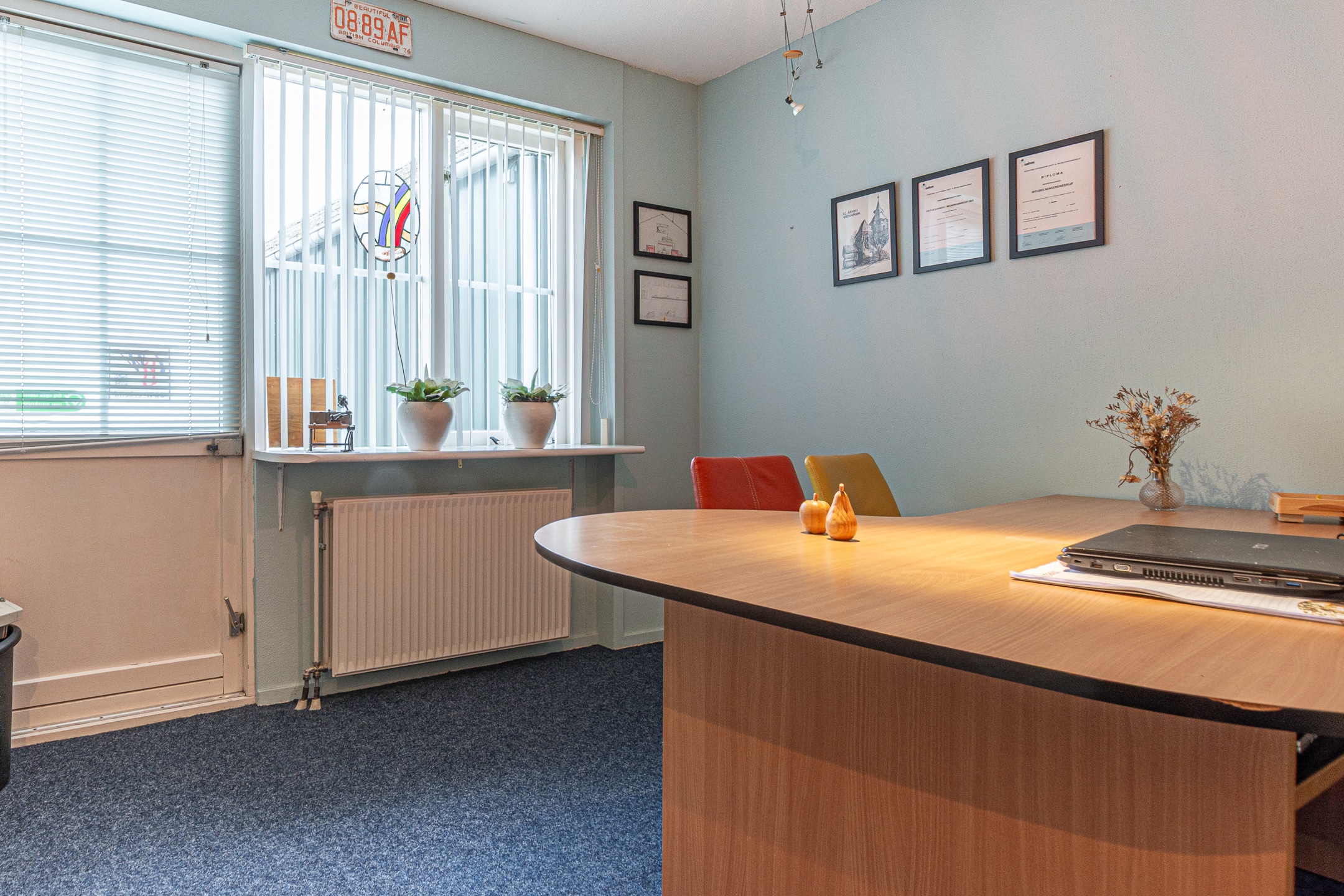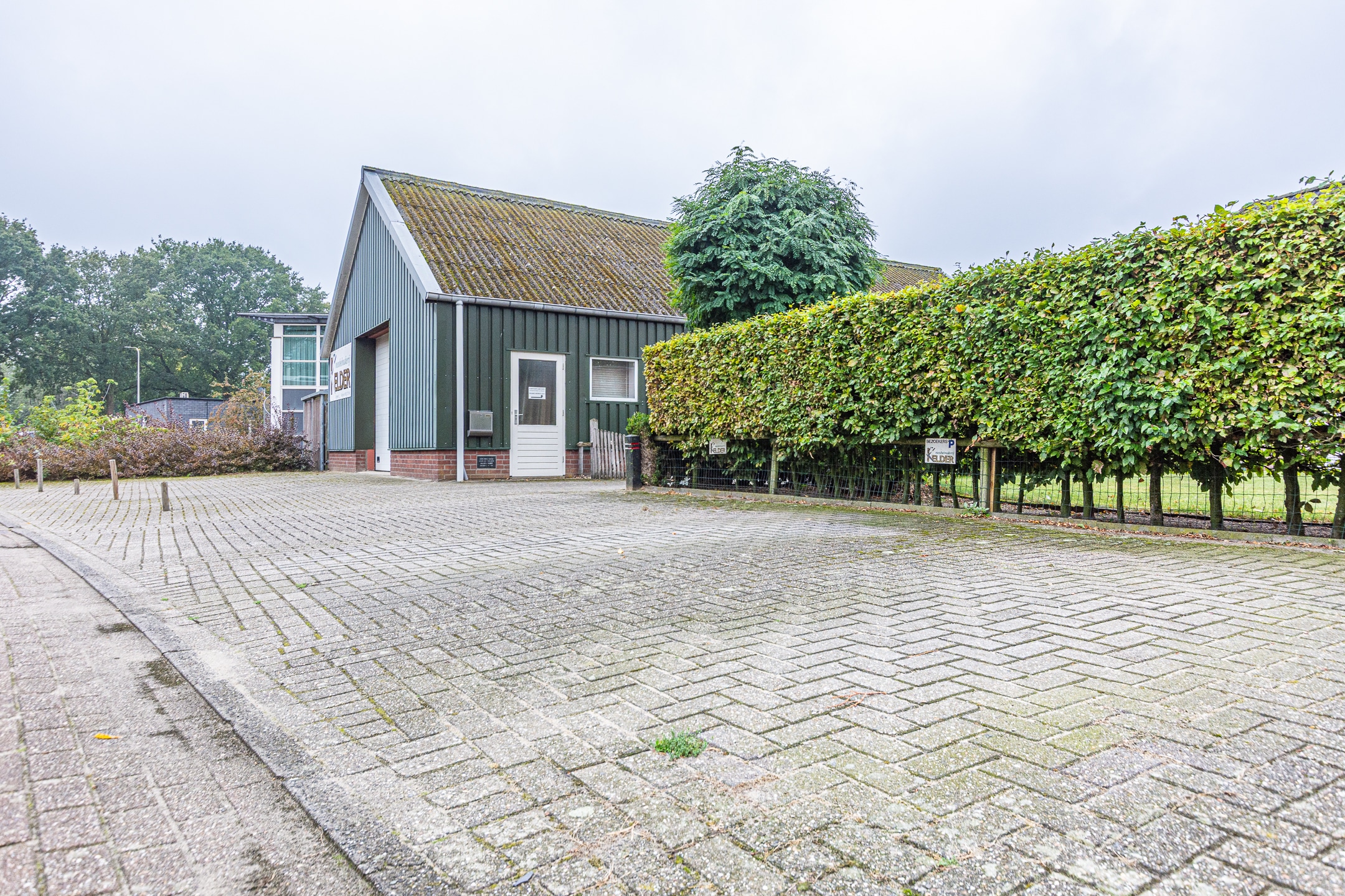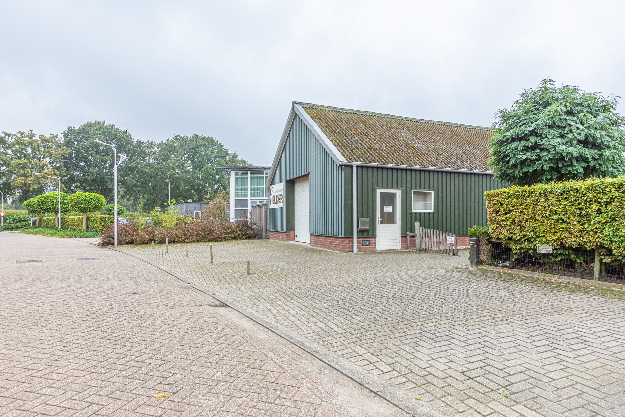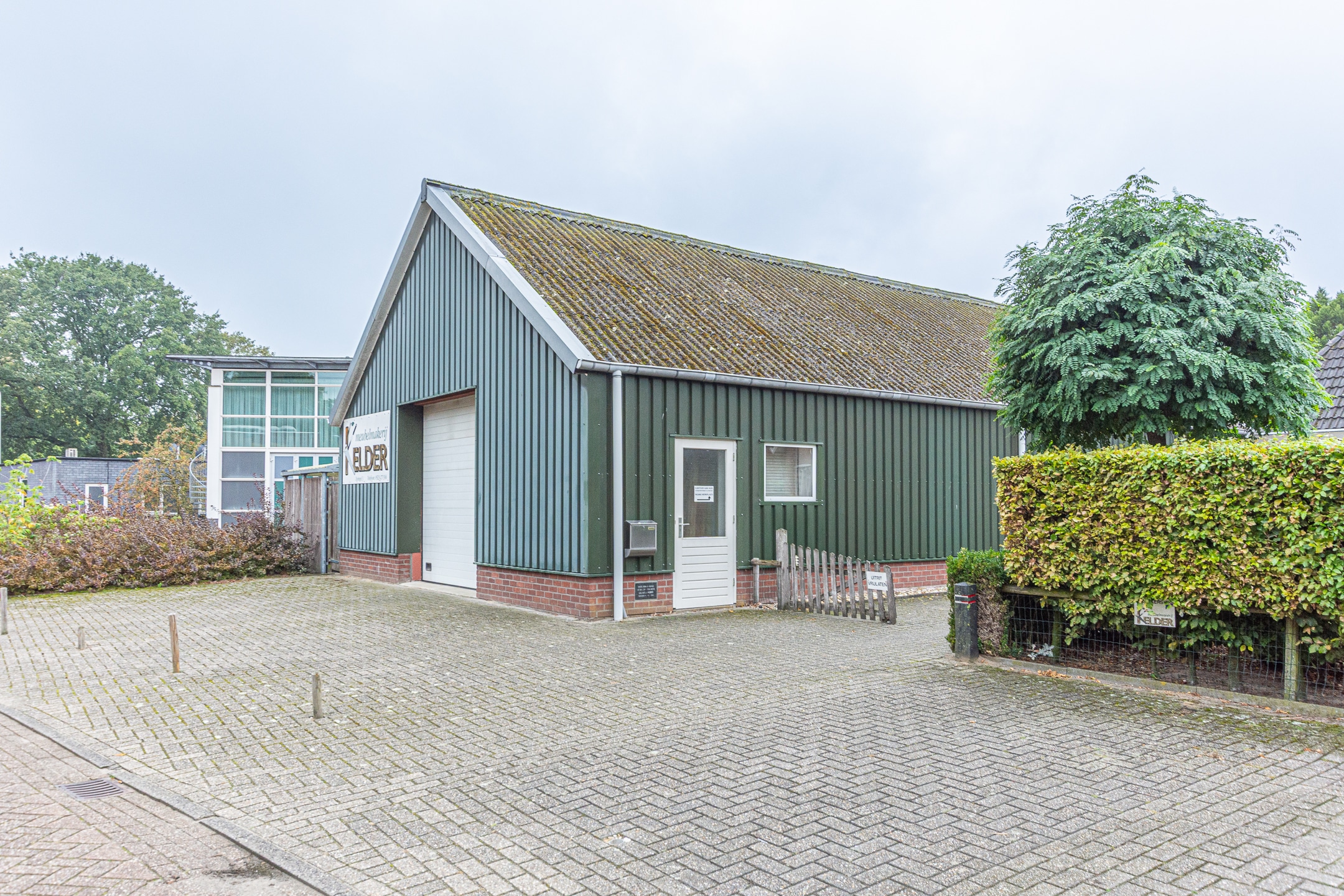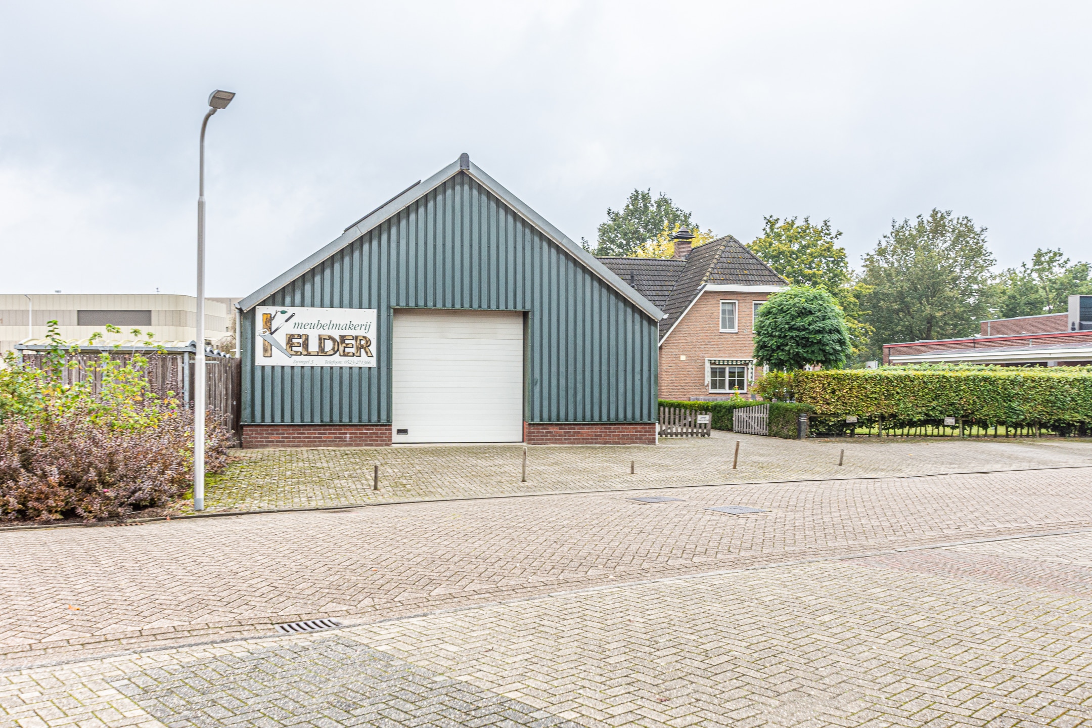 Vrijstaande bedrijfshal met overheaddeur, begane grond 140m² en 1e verdieping 105m²